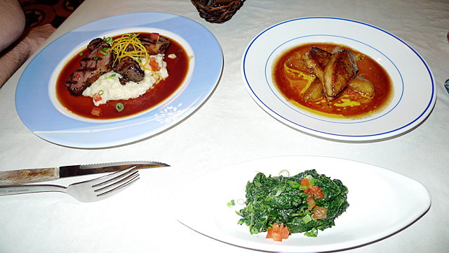 Duck with risotto, foie gras, and creamed spinach as a side order. :D