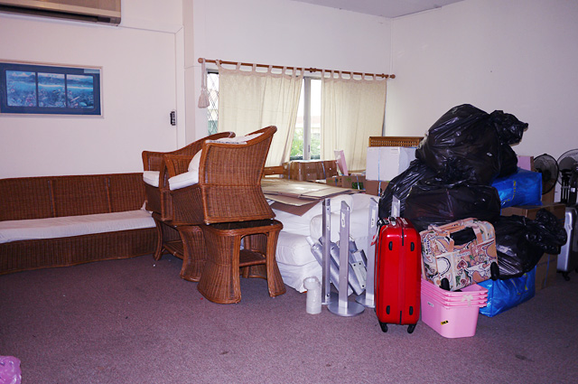 Look at the amount of stuff I have!! And I threw away SO much stuff too. The rattan furniture doesn't belong to us but everything else is to be moved...